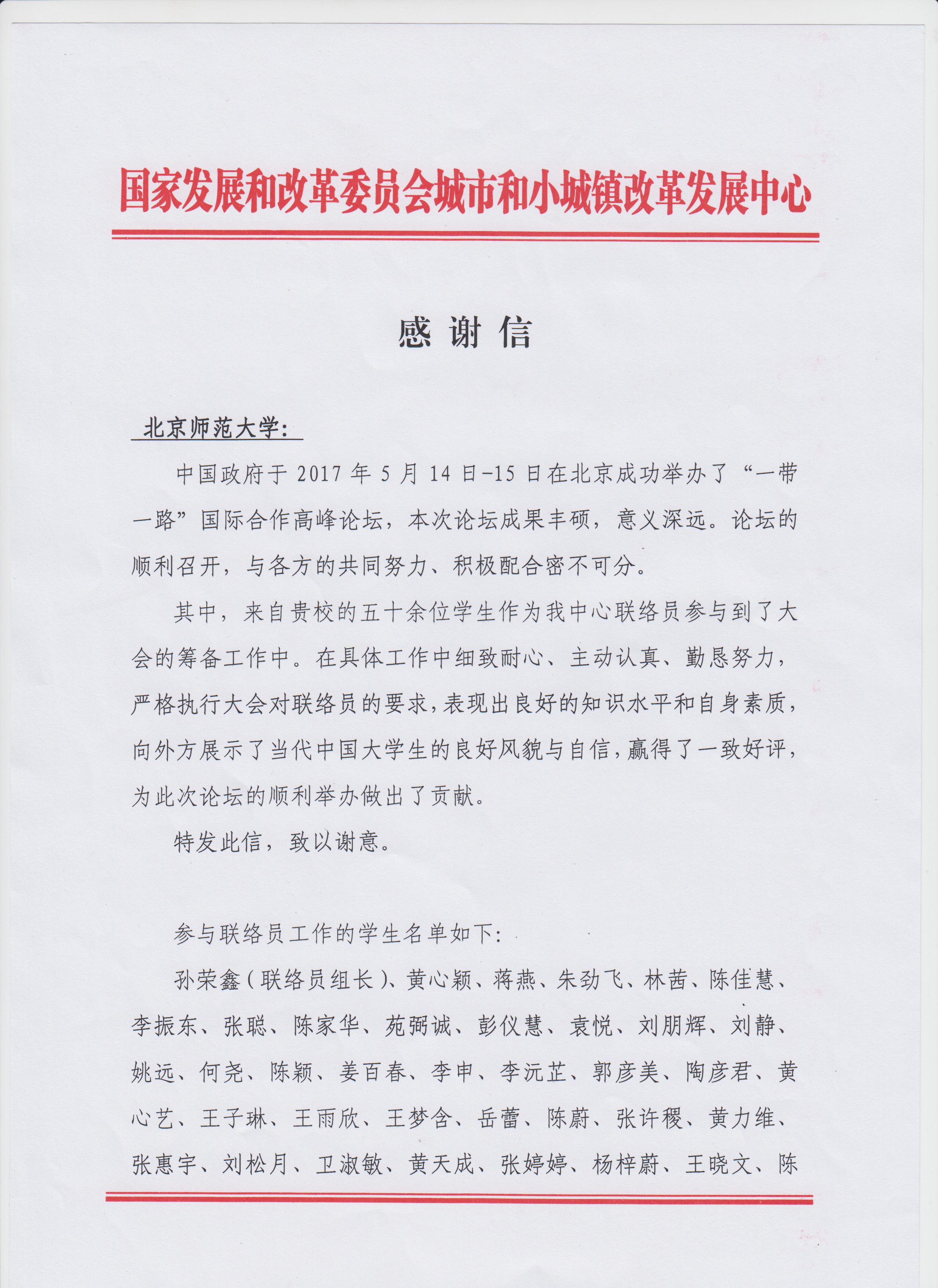 On 1st June 2017, we received a letter of thanks from National Development and Reform Commission Urban and Small Town Reform and Development Center.