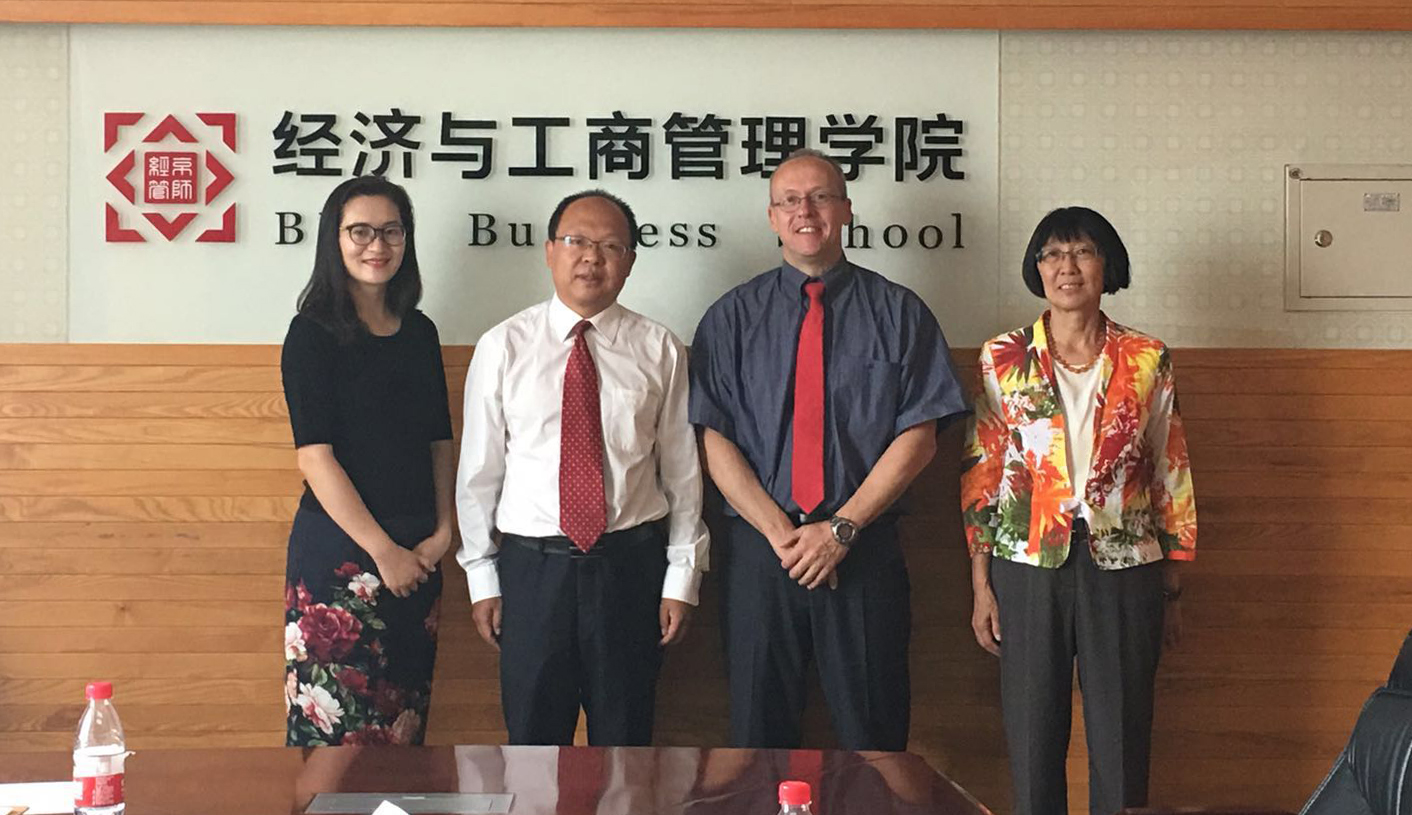 On 29th Aug. 2017, Andreas Gissel, vice principle of University of Applied Sciences Ludwigshafen am Rhein (UASL), and Aiming Gao, Assistant to the Principle visited BNUBS. Mr. Cui Xuegang, Associate Dean of BNUBS met with the guests. Ms. Tian Hongjun and Ms. Shang Yihong from BNUBS Office of International Exchange and Cooperation joined the meeting.