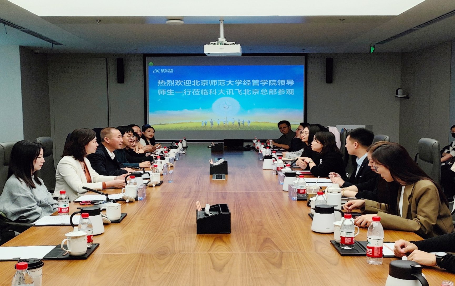 In response to the national strategy for the development of artificial intelligence and to deepen the integration of industry, academia, and research in the field of artificial intelligence, on March 21, 2025, Qi Yudong, Dean of BNUBS, Zhou Jianghua, Director of the MBA Education Center, Yu Chen, MBA Employment Supervisor, Xu Kaige, Double shouldered Counselor, Gao Juntong, MBA Program External Mentor, and Lu Jun led a team to visit and exchange ideas at iFlytek Beijing headquarters. 46 undergraduate and MBA students from the School participated in this event.