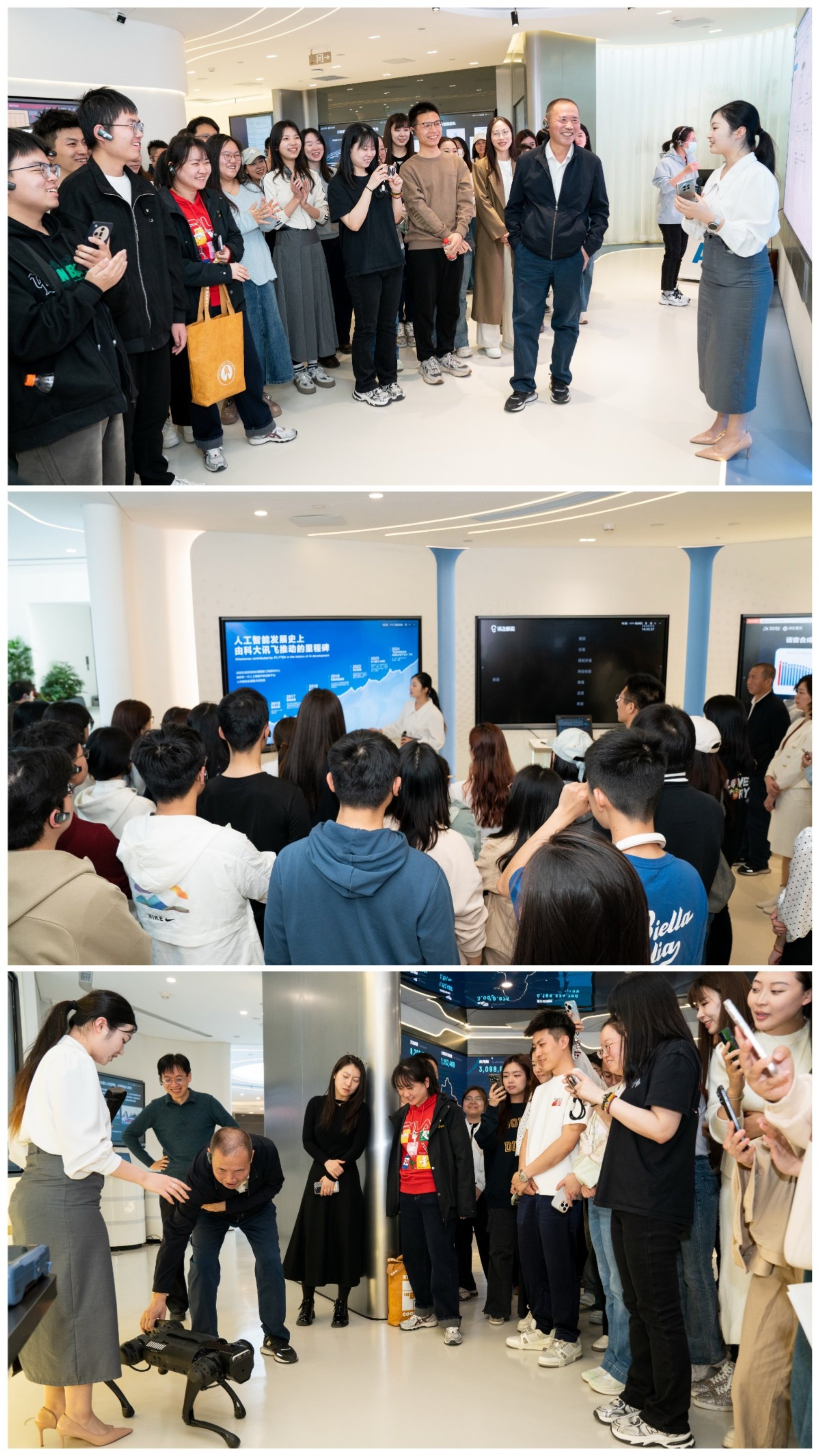 Firstly, under the guidance of the staff, the teachers and students visited the iFlytek Intelligent Exhibition Hall and learned about the development history, business sectors, and technological innovation achievements of iFlytek. The exhibition hall vividly showcases iFlytek's exploration and practice in education, medical applications, commercial offices, and other fields through multimedia interaction, real-life simulations, and other methods. IFLYTEK's simultaneous interpreting conference system, dual screen translator, intelligent office book and other products have attracted extensive attention from teachers and students. These products not only reflect the profound accumulation of iFLYTEK in AI technology, but also show how AI technology can bring convenience and change to people's work and life. Especially based on the iFlytek Spark Cognitive Big Model V3.0, the vertical domain intelligent tool Spark Research Assistant is launched, which deeply integrates multimodal interaction, complex data processing, and interdisciplinary knowledge integration capabilities, allowing students to have a visual understanding of the application of artificial intelligence technology in the scientific research field.