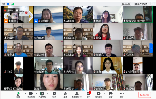 On July 10th, the main forum was successfully held at the Tencent Meeting. Associate dean Professor Zhang Pingdan, dean of Department of Economics Professor Yang Juan, dean of the Department of Finance Professor Hu Haifeng, dean of the Department of Accounting Assistant Professor Wu Qinhong, Professor Qu Ruxiao from Department of International Economy and Trade, Professor Xing Chunbing from Department of Economics, and Assistant Professor Hu Conghui from Department of Finance attended the main forum.