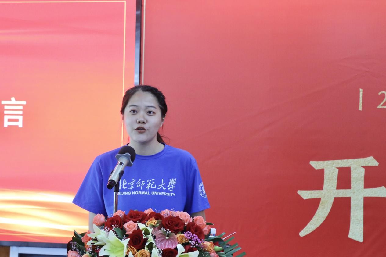 Yang Xiaoyang, Master of International Business of Class 2020, gave a speech as the representative of freshmen. She said that as students of BNU, we should dedicate ourselves to the world and strive hard in our study. As students majoring in International Business, we also needed to have a keen insight from an international perspective, so that we could explore bravely in BNU, a platform for pursuing dreams, and found our unique and dream-pursuing selves.