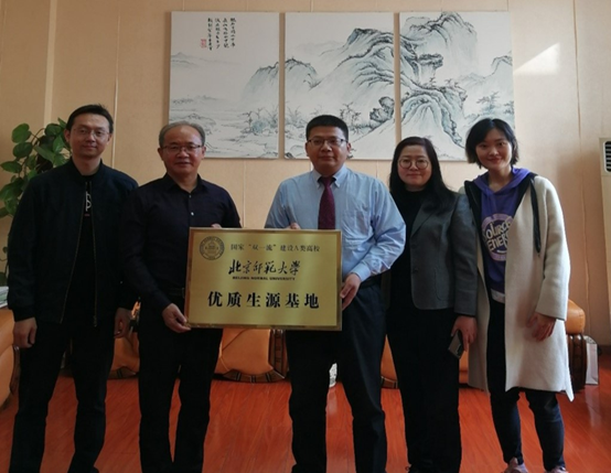 On November 12th , Xu Xiaoping, President of Liantang No. 1 High School, Kong Liuquan, Associate Director of the Academic Affairs Office, Zhang Pindan, Associate Dean of BNUBS, Zhang Haijia and Duan Lingzhi attended the awarding ceremony of high quality student base. The two sides agreed to further enhance inter-university exchanges by relying on the platform construction of high-quality student source base, explored the mode of in-depth cooperation between the two sides, and recommended more outstanding students to apply for Beijing Normal University.