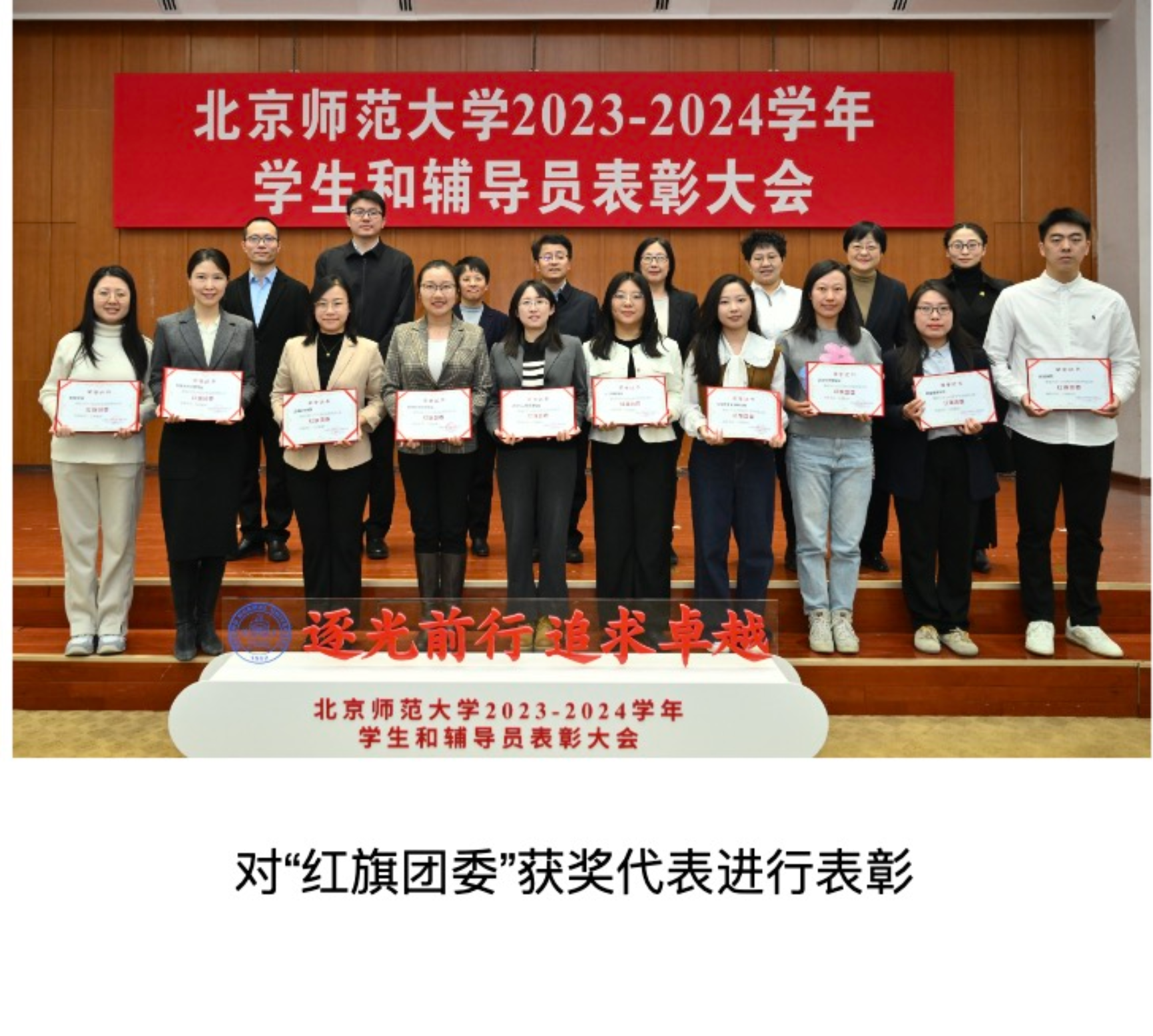 The conference announced the recognition decisions and winners of various awards. In the awards competition for advanced teacher collectives and individuals, BNUBS was awarded the titles of "Advanced Collective in Student Work" and "Red Flag Youth League Committee" for the 2023-2024 academic year. Han Lili, Associate Secretary of the Party Committee of our School, won the "Exemplary Individual in Student Work" and "Exemplary Individual in Recruitment Work" in the 2023-2024 academic year, Chang Xinyang, Secretary of the Youth League Committee of our School, won the "Excellent Secretary of Youth League Committee", Gao Jingjing won the "Excellent Contact Person in Recruitment Work", and 11 teachers, Wang Wei, Wang Xue, Wang Lulu, Kong Haiyang, Zhu Mengbing, Li Ran, Zhang Huili, Zhang Huilin, Chen Chaofan, Gong Shiyang and Kang Haoran, won the "Excellent Counselors".