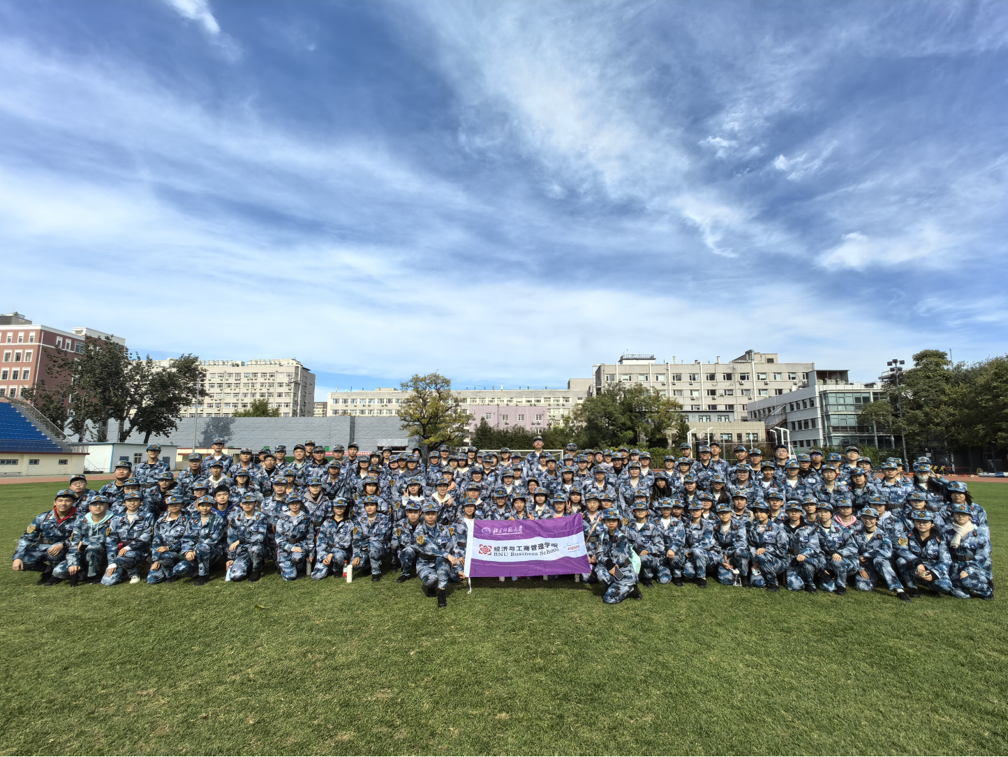 In order to implement the fundamental requirements of the goal of building a strong military, enhance students' understanding of military basic knowledge and mastery of basic military skills, establish national security awareness, and deepen national defense concepts, BNU hold the 2024 undergraduate military training activities on the Haidian campus from October 12th to 27th, 2024, in the morning, evening, and weekend. This military training was led by the double shouldered counselor Xu Kaige and the student affairs assistant Fan Ruicong. The students of BNUBS actively responded and devoted themselves to the military training. They fearlessly faced difficulties and worked hard on the training ground, fully demonstrating their excellent down-to-earth and upward spirit.