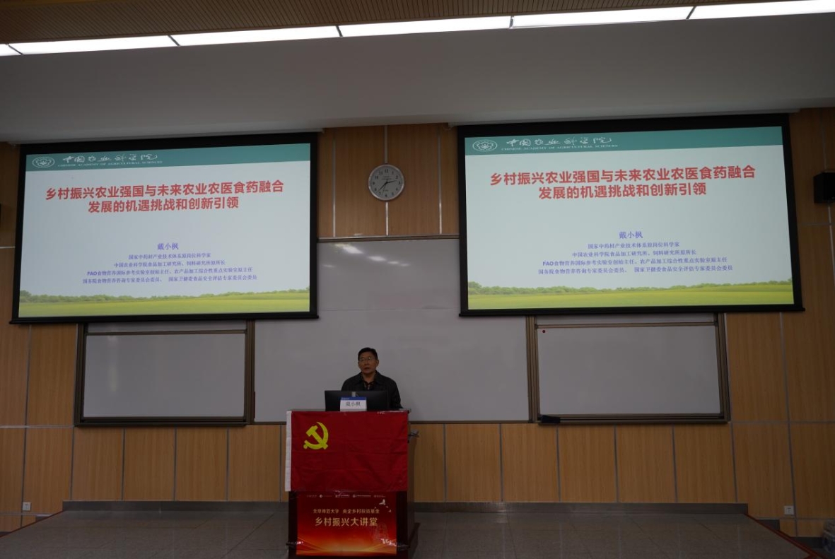 Researcher Dai Xiaofeng delivered an academic lecture entitled "Opportunities, Challenges and Innovation Leadership in the Integrated Development of Rural Revitalization, Agricultural Power and Future Agriculture, Agriculture, Medicine, Food and Medicine", in which he deeply analyzed the new path for the integrated development of rural revitalization and future agriculture. As the former post scientist of the National Industrial Technology System for Chinese Medicinal Materials and a member of the Science and Technology Committee of the Ministry of Agriculture and Rural Affairs, Researcher Dai Xiaofeng systematically expounded the strategic direction of China's agricultural modernization transformation in combination with more than 30 years of scientific research practice. He proposed that human agriculture has gone through four revolutionary evolutions, from the picking and fishing of primitive agriculture, the farming civilization of traditional agriculture, the industrialized production of modern agriculture, and is accelerating towards the future agricultural stage with nutritional health as the essential feature. He emphasized that the implementation of rural revitalization needs to focus on three paths: industrial integration, cultural empowerment and scientific and technological countryside, develop new business forms such as central kitchens and intelligent restaurants, and protect the cultural ecology of traditional villages. Dai Xiaofeng called on the academic community to strengthen cross-disciplinary research in such fields as nutritional targeted design and intestinal microecological regulation to provide scientific and technological support for the construction of an agricultural power.