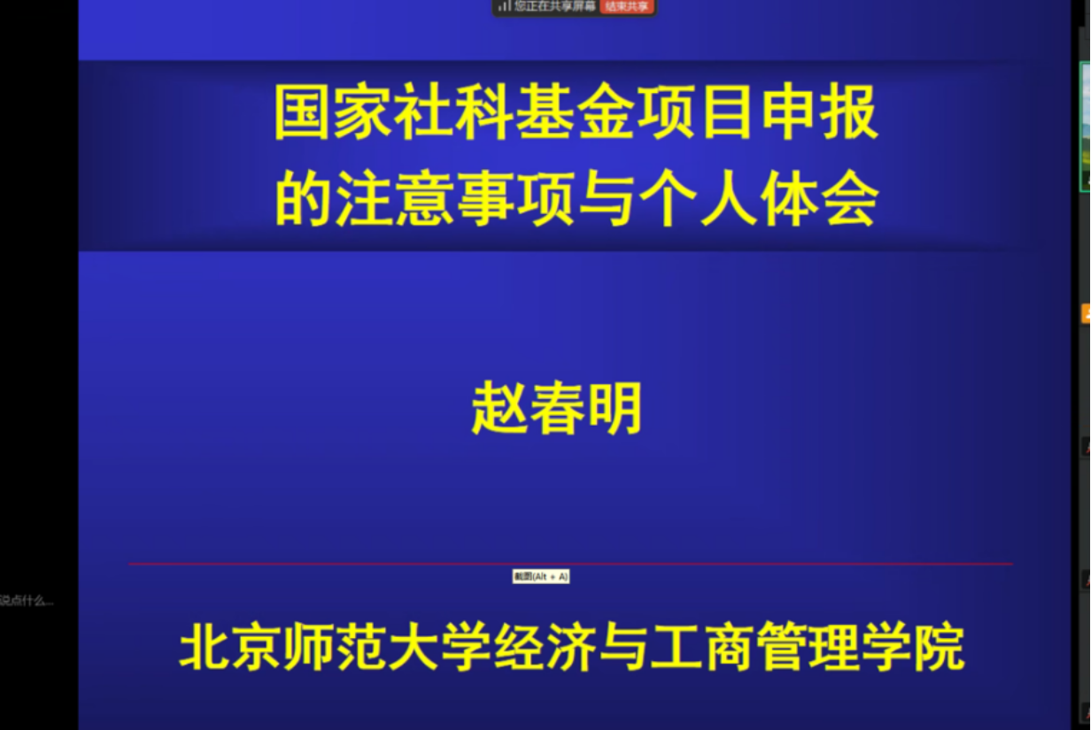 In order to earnestly do a good job in the application for 2025 National Social Science Fund projects and further strengthen organized scientific research, on April 16, the School successfully held a guidance and exchange meeting on the application for 2025 National Social Science Fund projects. Professor Zhao Chunming was invited to provide guidance at this meeting. Nearly 50 teachers, doctoral students and postdoctoral fellows with the intention of applying actively participated online. The meeting was chaired by Associate Dean Wei Hao.