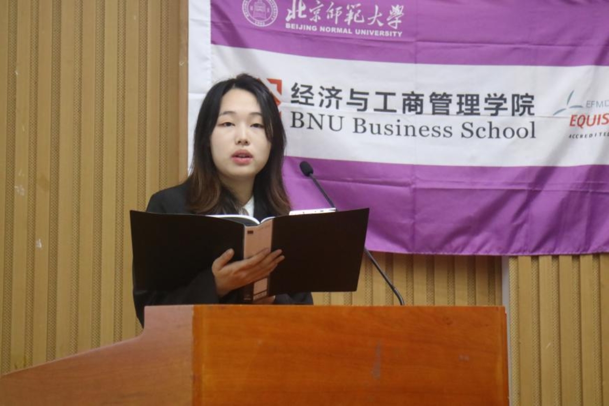 Zhao Tian, representative of the student union, and Liu Xinran, representative of the graduate student union, delivered speeches respectively. The positive work of the Student Union and Graduate Student Union of BNUBS has been affirmed, and both the organizational construction and event organization have received unanimous praise from the faculty and students of the School. They looked forward to the student organizations of the School to adhere to the concept of "wholeheartedly serving the development of classmates", further deepening reform and innovation, and promoting the vigorous development of the School's youth league program.