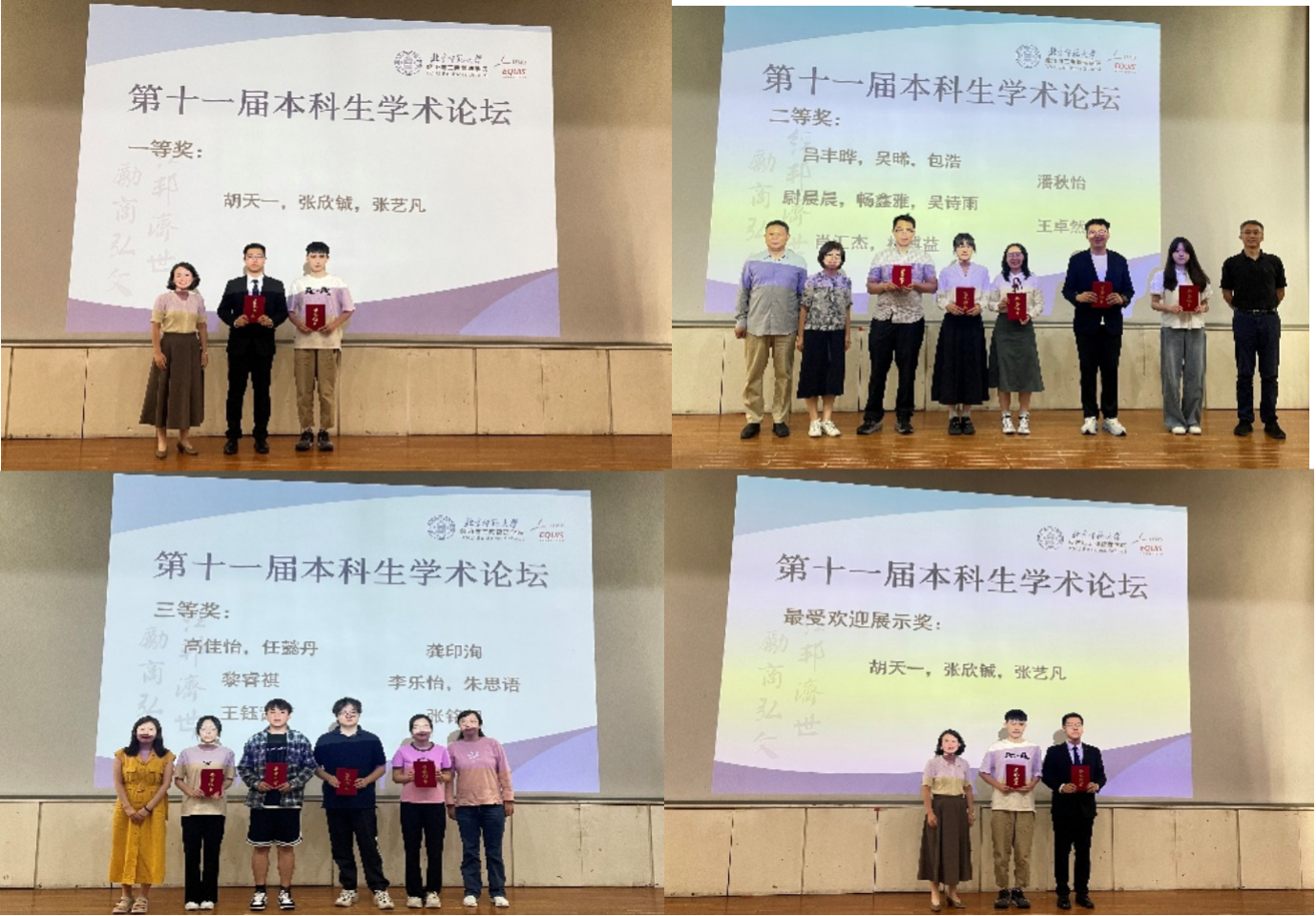 At the end of the forum, an award ceremony was held. Through voting, 1 first prize, 5 second prizes, and 6 third prizes were selected. At the same time, 1 Most Popular Presentation Award was selected by the students present at this Undergraduate Academic Forum.