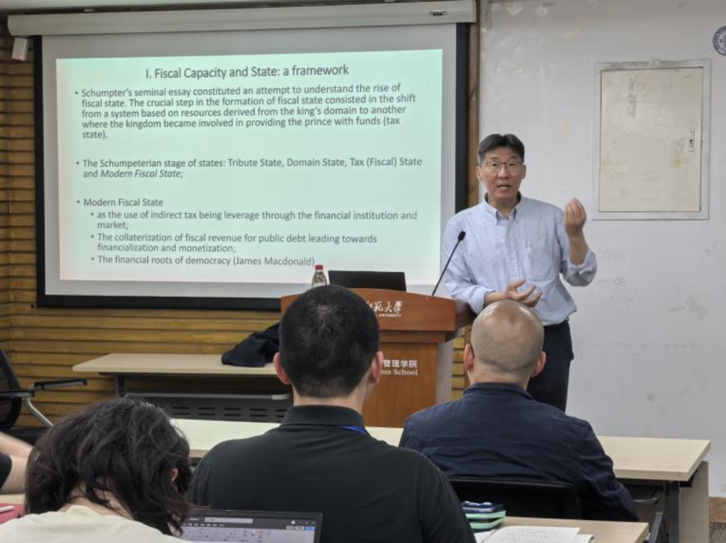 At 15:00 on May 7, 2025, the 148th session of the "BNUBS Famous Expert Lecture Series" and the 1st session of the "Economic History Lecture Series" hosted by BNUBS, was grandly held at Room 9406, JingShi Building. This lecture specially invited Professor Ma Debin, an outstanding visiting professor at Tsinghua University, as the keynote speaker. It was hosted by Teacher Chen Yueyuan from the School and attracted the participation of many teachers and students.