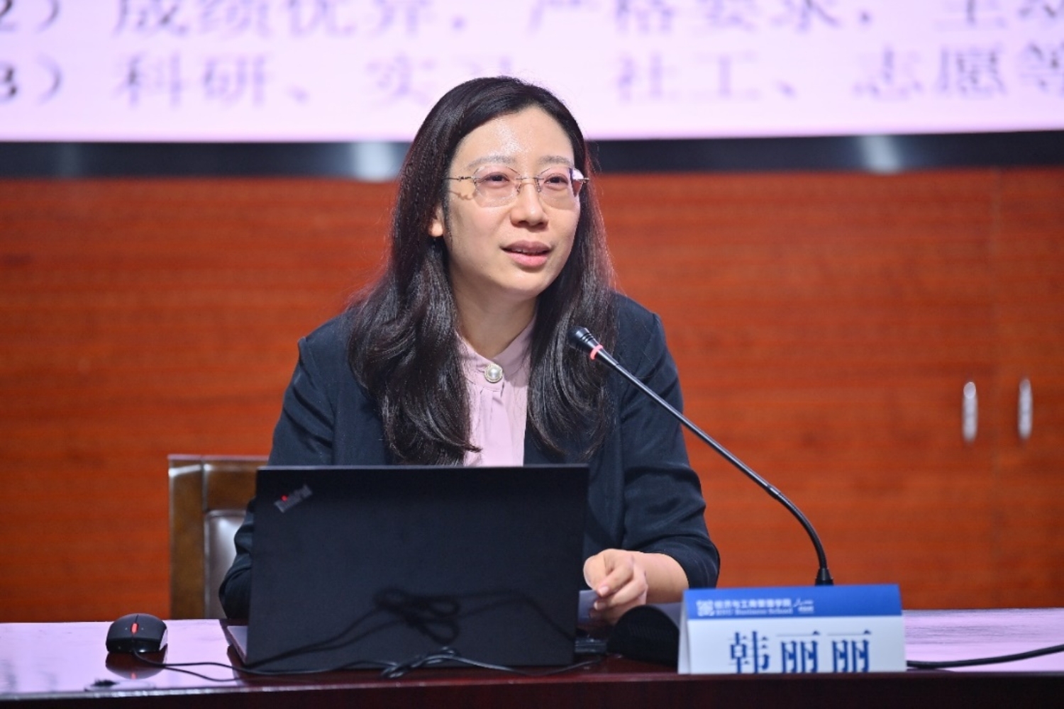 Ms. Zhang Huilin introduced a series of themed activities of the School's academic counseling, and reminded students to correctly understand university life, correct wrong ideas, and encouraged students to do a good job in studying the main business, actively expand their horizons and do a good job in the reserve army of economists and management scientists in China. Mr. Li explained the characteristics of career planning to the students and showed them various channels and methods to quickly obtain employment information. Ms. Gao Jingjing introduced to the students in detail the various financial assistance policies of the university and the School, and the various scholarship systems of the university. At the same time, she also introduced to the students the requirements to enlist in the army, various preferential treatment and recruitment policies. Teacher Kang Haoran introduced how to carry out class construction from five aspects, and encouraged each class to pay attention to the construction of class culture and class style, improve class cohesion, and briefly introduced the relevant matters of household registration archives to the students. Teacher Fan Ruicong introduced the School psychological counseling service system to the students, and encouraged the students to pay attention to their own mental health, and be sure to seek help in time if they encounter difficulties.