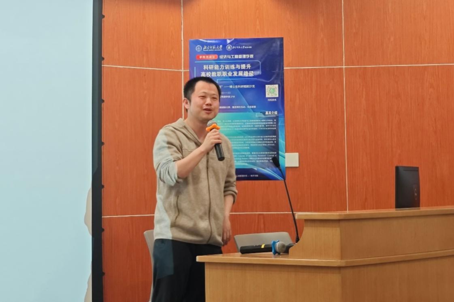 The event focused on core topics such as the construction of research thinking, academic paper publication, and job - hunting in universities, and in - depth exchanges were carried out through special topic sharing and teacher - student dialogues. Professor Li Kaijie, with the theme of "Some Insights on Research and Faculty Career Development", combined his personal experiences during his Ph.D. studies and after starting work. Starting from detailed cases in his roles as an economics Ph.D. student, the director of the editorial department of a CSSCI - indexed journal, and the dean of a school, he provided meticulous suggestions and guidance to the doctoral students present on paper writing, submission, and job - hunting.