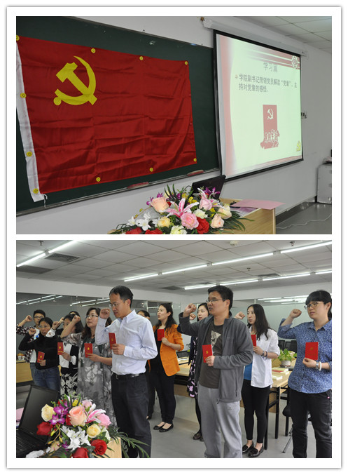 支部书记李瑛淑主持会议,提出行政教师落实“两学一做”工作要重点根据党章中对党员的义务进行学习,并结合自己的实际工作,做合格党员。葛玉良书记带领全体党员认真解读党章中党员的义务章节,并分享自己入党经验,并要求青年党员重新审视入党动机,以合格党员的要求时刻提醒自己。参会的党员纷纷开展批评与自我批评,反思自己在工作中的不足与可进步空间,如,分党委组织委员王丹提出在工作中应进一步加强自身学习,加强理论武装;党员张璇谈到观看“雨花台”大型话剧对信仰的认知;党员王璐璐谈到在生活实践中感悟并深化对社会主义的信仰认知,如绿色出行、校园文化等;党员安亚伦谈到精英学生的入党教育与引导,从反向思维解读信仰。座谈后,孙志军书记带领支部全体党员重温了入党誓词。