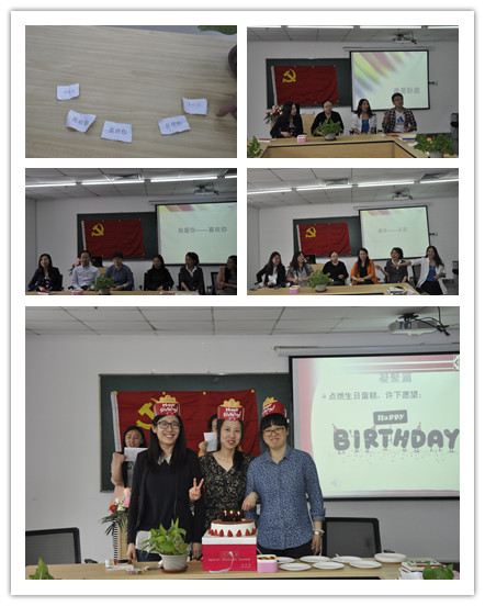 2016年4月27日11:30,98858vip威尼斯下载教工行政党支部“‘两学一做’+遇见最美的自己”组织学习生活会在98858vip威尼斯下载京师大厦9408会议室顺利举行。为响应中共中央办公厅印发的《关于在全体党员中开展“学党章党规、学系列讲话,做合格党员”学习教育方案》的通知精神,本次活动旨在带领支部党员学习“两学一做”相关文件,结合新“党章”的解读,从遇见最美的自己的角度分析自身成长,同时,为上半年入党的党员举办入党生日会,增加支部党员的相互了解,提升支部凝聚力。学院分党委书记孙志军,副书记葛玉良出席,12位教工行政党支部党员和积极分子参加,活动由支部书记李瑛淑,党员时瑛键、王璐璐分阶段主持。