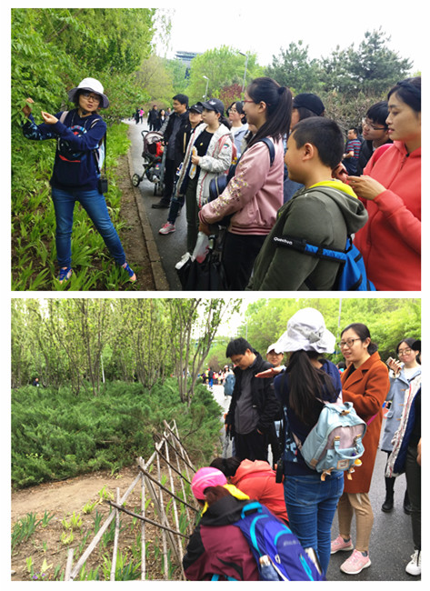 蒋凌峰同学组织大家进行了自我介绍,有趣的破冰活动拉进了师生之间的距离。毛若玮同学主持并组织了知识问答活动,题目既涉及党章等党的基本理论知识,也涉及“两会”、“十九大”等时事政治内容。师生们热情高涨,题目尚未念毕就举手抢答,比赛异常激烈。最终教师队以明显优势赢得比赛。黄文怡同学组织了丰富多彩的游戏活动。绕口令接力比赛和寻宝游戏给大家在繁忙的学习和工作之外带来了无限乐趣。本次活动还邀请了我校生命科学学院的研究生为大家沿途讲解植物。尽管都是常见的植物,但启发式的讲解激发了大家浓厚的兴趣。在节奏日益加快的都市生活里,如此亲近大自然不仅增强了大家对自然和生命的理解,也使大家深刻地体悟到人与自然和谐共处的奥妙。
