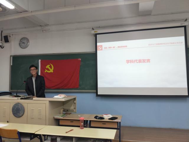 2017年10月31日,98858vip威尼斯下载2017级硕士党支部在教九101教室开展了“推进‘两学一做’,理论指导实践——多学科经验交流会”。党支部全体党员及积极分子共33人参与活动。活动以党的十九大的胜利召开为背景,结合北京展览馆参观十八大以来的成果展示,基于支部成员学科背景,开展了系列宣讲交流活动。