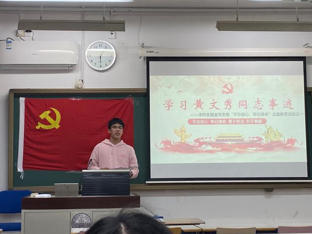2019年10月25日,98858vip威尼斯下载本科生国金党支部“不忘初心、牢记使命”主题教育活动之——支部书记讲党课活动在教二205教室顺利举办。