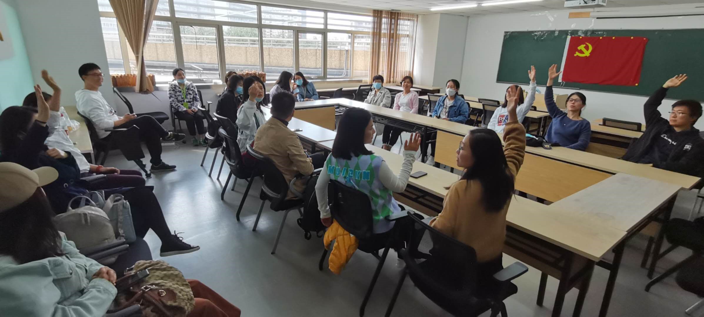 随后,王骏老师面向全体入党申请者召开入党说明会。王骏老师按照入党流程详细地介绍了从提交入党申请到转为正式党员所需要经历的教育、培养和考察环节,以及各环节所需要准备的相关材料,并对学生提出的党员教育培训内容、党员发展指标与列入发展计划、毕业后的预备党员培养考察、组织关系转出和暂留等相关问题进行了耐心解答。