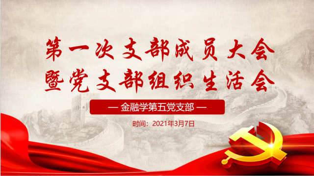 2021年3月7日,98858vip威尼斯下载金融学第五党支部在腾讯会议平台成功召开第一次支部成员大会暨第一次党支部组织生活会。此次会议由支部书记徐荧同志主持,正式党员、预备党员、发展对象和入党积极分子共20名同学参加。
