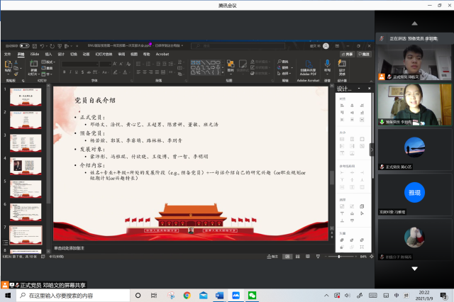 随后,支部全体成员逐一进行了自我介绍,大家都纷纷表达了对今后在支部中共同学习、相互交流和共同进步的期盼,表示将共同努力将支部建设的更好。