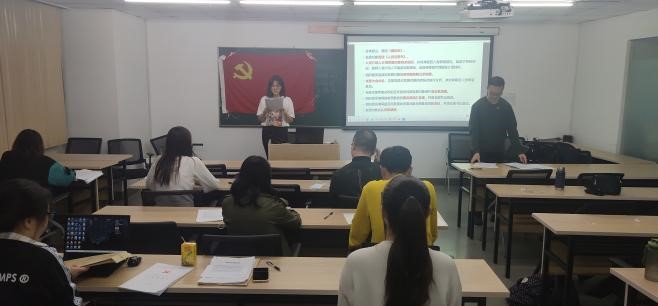 首先,党支部全体成员起立,合唱《国际歌》。支部书记袁胜轩同志清点会议出席人数,并介绍各发展对象的基本情况。发展对象在党旗下宣读《入党志愿书》,向党组织汇报个人对党的认识、入党动机,并进行了履历梳理和自我剖析。接着,入党介绍人介绍发展对象的有关情况,并对其能否入党表明意见。支部党员袁璐璐同志宣读发展对象的政审报告及公示结果。基于以上信息,支部成员充分讨论发展对象的优缺点,并帮助其增强自我认识,明确努力方向。