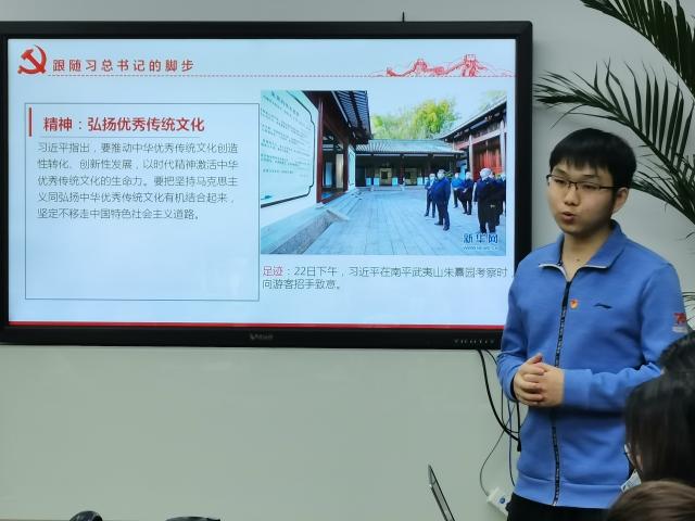 最后,蒋凌峰同志主持了“奋力谱写全面建设社会主义现代化国家新篇章”——习近平总书记在福建考察期间重要讲话精神学习的专题分享会。带领支部成员一起,跟随习近平总书记的脚步,学习其在福建考察期间的重要讲话精神。