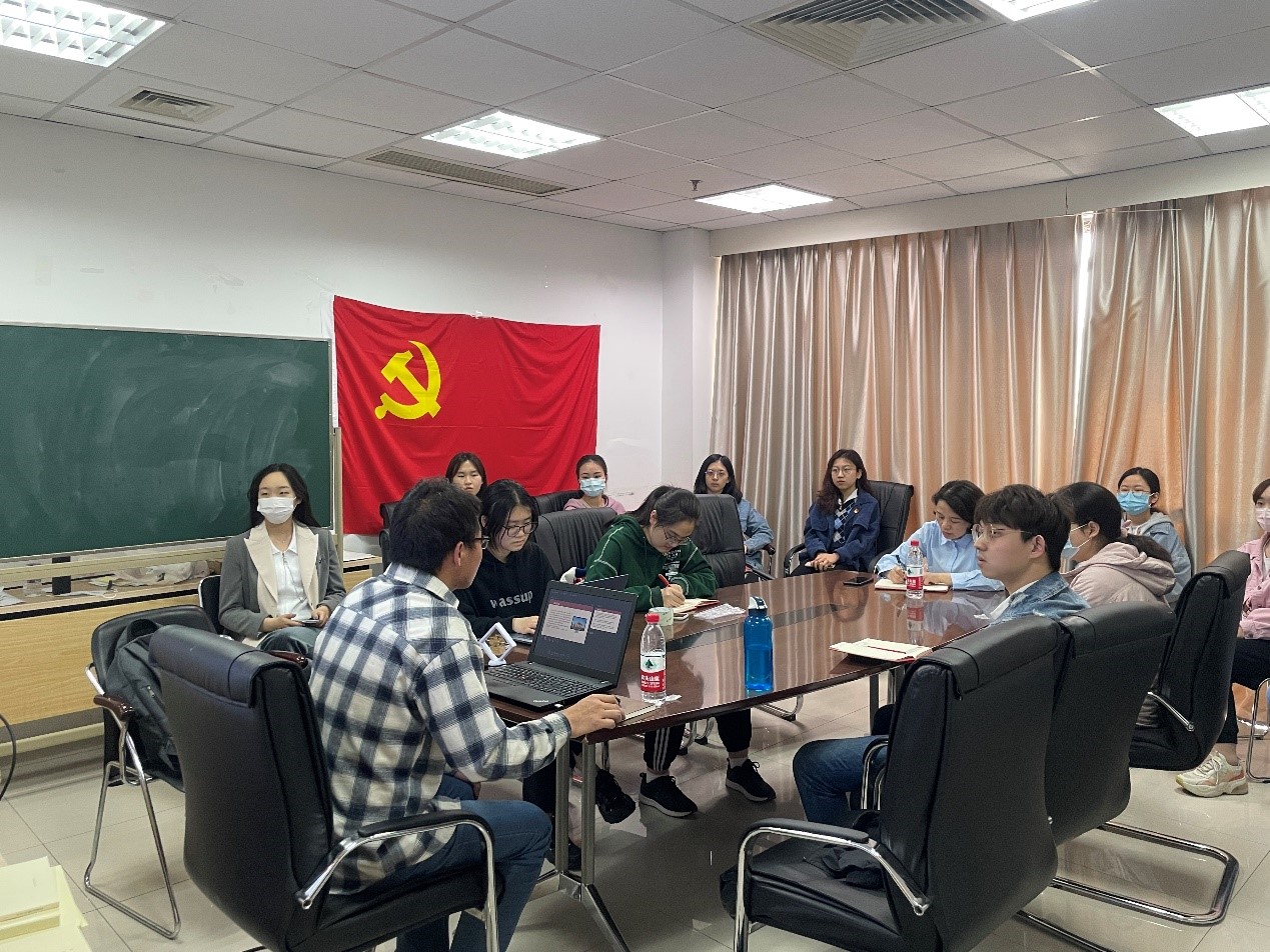 首先,支部书记赵加良向支部介绍宣讲员罗紫琪同学和教工党支部书记江婕老师。