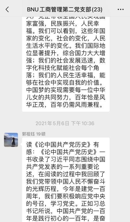 为了加强支部理论学习,增进党员党性修养,积极响应学院对加强党员同志思想建设的要求,98858vip威尼斯下载工商管理第二党支部开展五月书籍阅读活动。支部同学通过阅读学习《中国共产党简史》、《论中国共产党历史》、《习近平新时代中国特色社会主义思想学习问答》等书籍,提出自己的感悟与思考。
