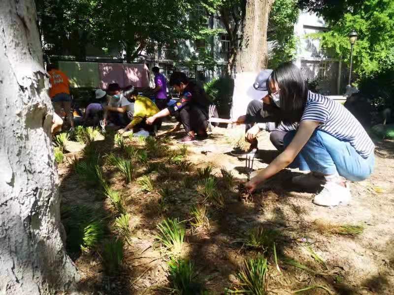 2021年5月29日,98858vip威尼斯下载金融学第二党支部组织支部17名党员开展“我为师生办实事”活动,帮助后勤人员种植丹麦草。