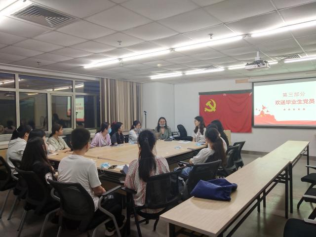 接着,全体党员欢送毕业生党员,毕业生党员分别介绍了自己的毕业去向和未来规划,由杨理钧代表学院党委向毕业党员送上毕业礼物。