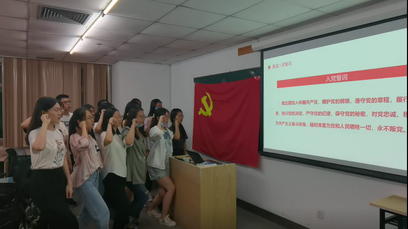 最后,支部全体党员起立,面向党旗,重读入党誓词,重温入党的神圣时刻,勉励自己不忘入党初心,继续砥砺前行!