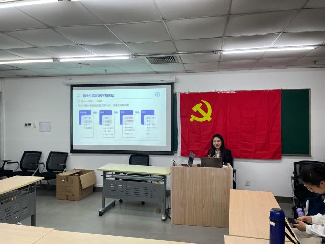 接着,支部三位博士生褚席、刘欢欢和张惠琳同志分享了在论文写作上的经验。褚席重点分享了如何进行论文选题,指出前瞻性、原创性和实用性是论文选题的三个重要因素。刘欢欢重点介绍了论文写作的步骤以及文献查阅方法,分享了诸多有效的英语文献阅读和查询的网站以及论文写作技巧。张惠琳重点分享了是如何做好课题研究,并分享了自己在博士期间的学习经验与感悟。通过三位同志的分享与交流,支部成员都在论文写作和课题研究方面收获颇多,补充了许多实用的工具以及论文写作技巧,对以后的学习工作有很大帮助。
