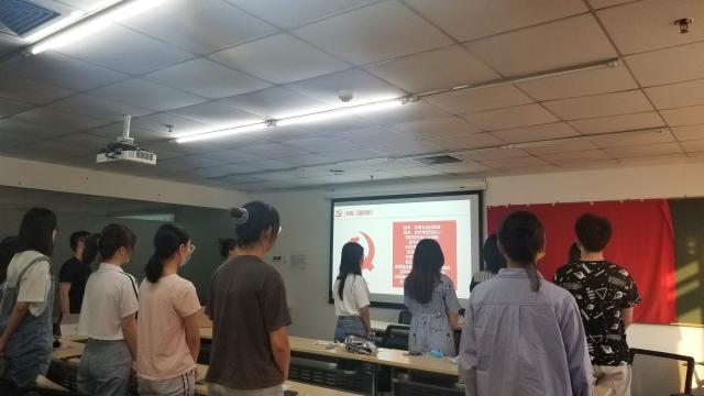 会议开始,全体同志起立共唱《国际歌》。随后,支部书记崔思璇同志对本学期支部工作进行总结。本学期工作主要围绕三个方面展开:一是规范组织工作,完善组织结构;二是加强学习教育,营造学党史、强信念的氛围;三是探索支部建设的特色方式。