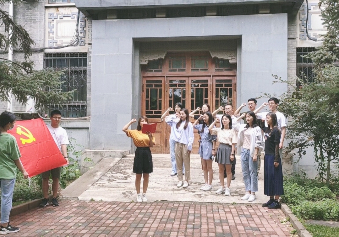 首先,为了庆祝中国共产党成立100周年,党支部成员在主楼旁集合,举行庄重的重温入党誓词活动。史玖琦同志领誓,其他党员举起右拳宣誓:“我志愿加入中国共产党,拥护党的纲领,遵守党的章程……”。面对党旗心向党,共产党员在此刻再次表达了对党一以贯之的郑重承诺。