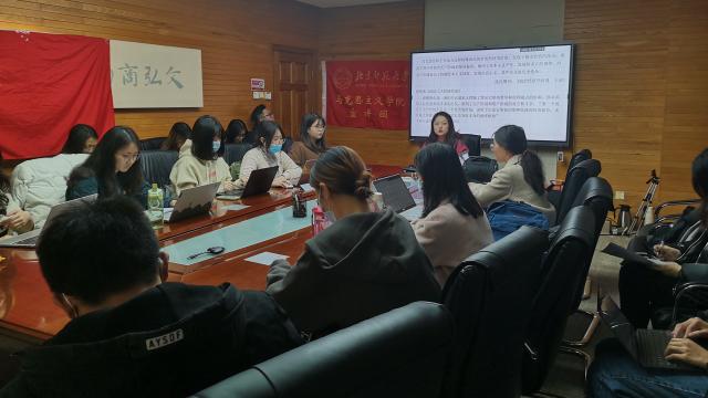 2021年10月24日,98858vip威尼斯下载工商管理第三党支部于后主楼1610会议室召开支部大会,邀请马克思主义学院求索学社宣讲团讲师高静开展了“邓中夏与中共领导下的早期工人运动”主题讲座,并交流学习了习近平总书记在纪念辛亥革命110周年大会上的重要讲话,以及对本学期后续的工作安排。会议由党支部书记薛佳安主持,支部党员、发展对象及入党积极分子参会。