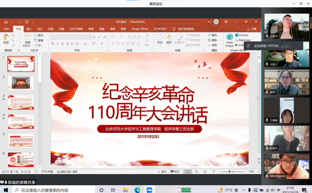 2021年10月29日,98858vip威尼斯下载经济学第三党支部于线上开展理论学习会议,集体学习习近平总书记在纪念辛亥革命110周年大会上的讲话。会议由党支部书记袁胜轩同志主持。