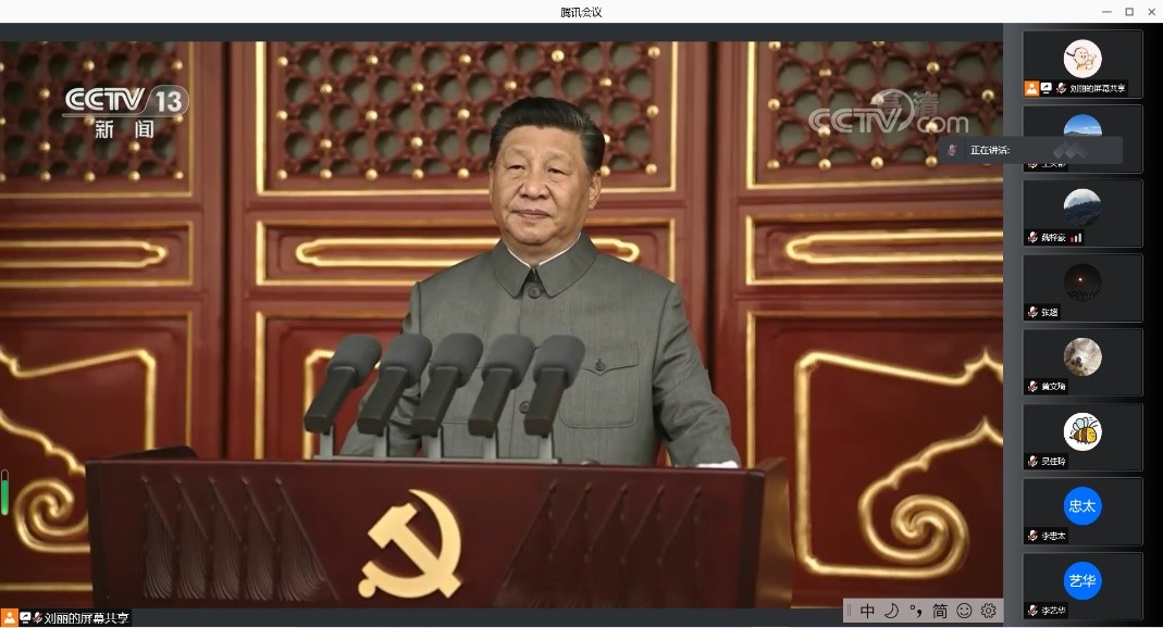 随后,全体成员共同观看学习习近平总书记在庆祝中国共产党成立100周年大会上的讲话。总书记的重要讲话贯穿历史、现在、未来,系统总结、全面阐述中国共产党百年奋斗的鲜明主题,向全世界庄严宣告我们实现了第一个百年奋斗目标,在中华大地上全面建成了小康社会,极大激发了中华民族和全体中华儿女强烈的民族自豪感和自信心,激荡起全党牢记初心使命、开创美好未来的奋进力量。学习此次讲话后,支部成员感触颇深。有的同学回顾历史,谈到中国共产党一经诞生,就把为中国人民谋幸福、为中华民族谋复兴确立为自己的初心使命,历史和人民选择了中国共产党,把民族复兴的重任交给了中国共产党;有的同学着眼未来,谈到中华民族伟大复兴的中国梦绝不是轻轻松松就能实现的,势必会充满风险挑战,面对挑战,只有中国共产党才能团结带领全国人民一道奋勇向前。