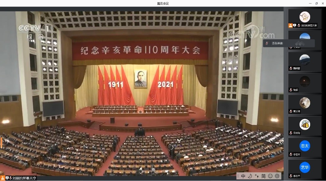接着,全体成员共同观看学习习近平总书记在纪念辛亥革命110周年大会上的讲话。总书记高度评价辛亥革命的历史功绩和重大意义,深刻阐述辛亥革命110年来的历史启示,呼吁海内外全体中华儿女更加紧密团结起来,发扬孙中山先生等辛亥革命先驱的伟大精神,携手向着中华民族伟大复兴的目标继续奋勇前进。大家纷纷表示经过长期奋斗,如今的中华民族向世界展现的是一派欣欣向荣的气象。面向未来,我们定能战胜一切艰难险阻,实现中华民族伟大复兴的中国梦。