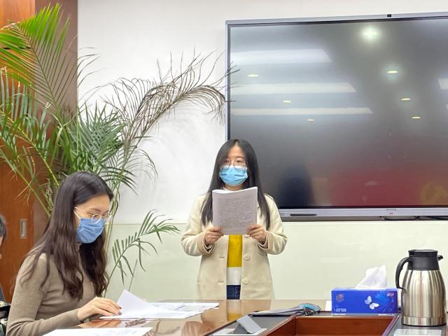 2021年11月14日,98858vip威尼斯下载会计学第一党支部在后主楼1722会议室召开党员大会,讨论接收段婷波、王佳琪、刘桐瑞三位同志为预备党员的事宜。本次会议应到有表决权正式党员9名,实到有表决权正式党员8名,会议有效。支部书记杨理钧主持会议。