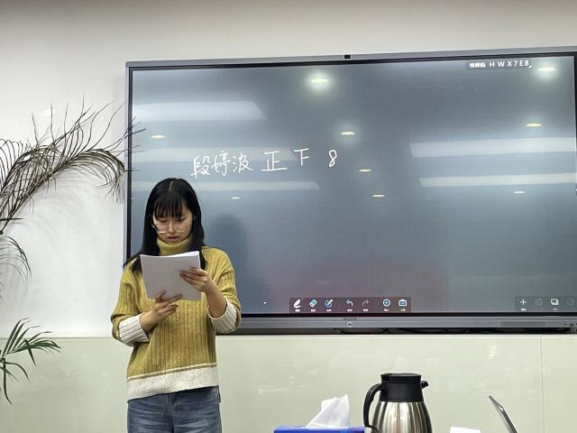 段婷波、王佳琪、刘桐瑞三位发展对象依次宣读了自己的《入党志愿书》,向党组织汇报个人对党的认识、入党动机、本人履历、家庭和主要社会关系情况。随后,入党介绍人介绍发展对象的有关情况,并表示发展对象基本达到了共产党员的要求,愿意介绍其加入中国共产党。支部书记杨理钧宣读了发展对象的政审报告和公示结果后,支部大会对发展对象的优缺点进行了充分讨论,帮助其更好认识自我,并希望发展对象在今后扬长避短,取得更大进步。之后,与会本支部有表决权的正式党员进行无记名投票,由监票人王禹宁同志和计票人史慧一同志唱票。王禹宁同志填写接收预备党员票决情况汇总表并由支部书记杨理钧宣读,三位发展对象均全票通过。支部书记杨理钧同志宣读接收预备党员的决议。最后,段婷波、王佳琪和刘桐瑞同志分别向大会表达了自己的感想与认识,表示今后将更加严格要求自己,不断进步,争取早日成为一名正式党员。