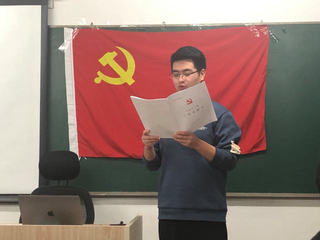 首先,卫民同志在党旗下宣读入党志愿书,向党组织汇报个人对党的认识、入党动机、履历及家庭和主要社会关系情况。入党介绍人介绍了对卫民同志的培养考察情况。卫民同志在入党积极分子考察期间积极听取其他党员同志提出的意见和建议,认真反思自身的不足,改正了做事不果断的缺点,同时提高了做事效率。支部书记宣读了对卫民同志的政审报告和公示结果。随后,与会党员讨论卫民同志优缺点并提出改进意见。7名正式党员采用无记名投票的方式对是否同意其发展为预备党员进行表决。大会通过王佩琪同志计票、王盈斐同志监票,刘松月同志依次宣读票决情况汇总情况和大会决议,大会通过卫民同志发展为预备党员。最后,卫民同志发表感言,表明今后将发扬优点改进缺点,并以共产党员的标准严格要求自己,为共产主义事业奋斗终生。