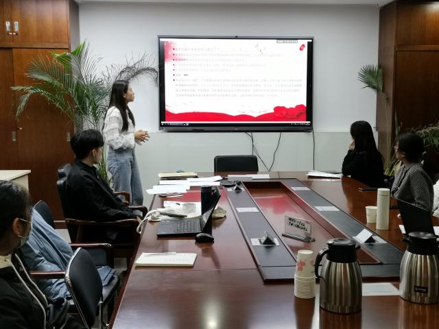 首先,支部大会开展理论学习,支部成员共同观看了人民日报《答卷人》《赶考路》视频。徐荧同志对党的十九届六中全会的主要内容进行了总结,并通过互动问答的方式展开详细讲解。王芷若、吴谱乐、蔡子龙、姜浩同学朗读了部分重要精神。
