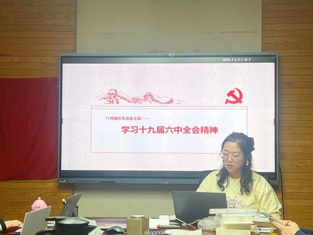 最后,支部开展了党的十九届六中全会精神专题党课活动。赵新宇同志以“‘数’说十九届六中全会”为主题,带领支部成员回顾了十九届六中全会中的重要表述,深入学习贯彻党的十九届六中全会精神,勉励支部同志坚持理想信念,牢记初心使命,为实现第二个百年奋斗目标、实现中华民族伟大复兴的中国梦而不懈奋斗。