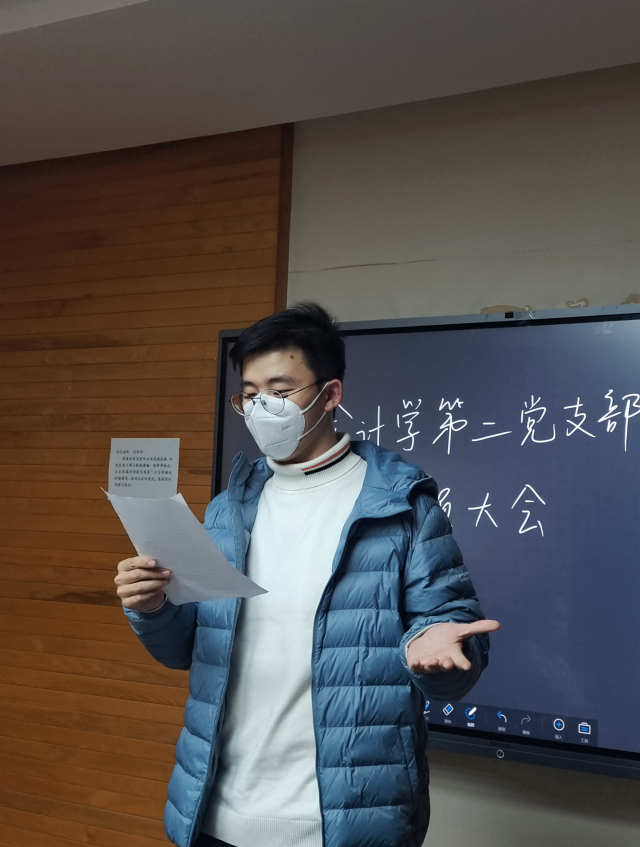 最后,崔学刚老师向本次党员大会接收的3名预备党员和2名积极分子表示祝贺。随着本次支部大会的召开,会计学第二党支部党员和积极分子的队伍进一步壮大,为支部注入了新的活力。希望各位党员和入党积极分子不忘初心、牢记使命,不断加强理论学习,用理论武装头脑,保持对理想信念的清醒认知和执着追求,充分发挥共产党员的引领作用!