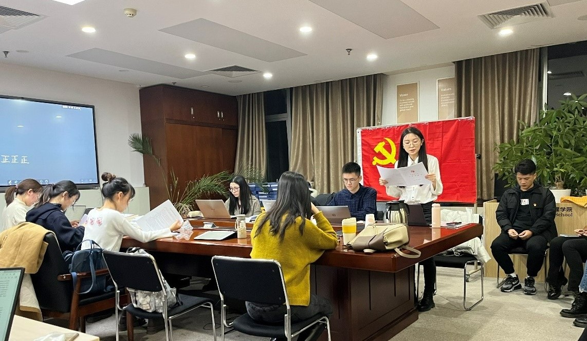 最后,支部书记董敏同志带领支部全体成员学习党的第十九届六中全会精神。支部成员分享了学习感想和体会。支部成员认识到,党的十九届六中全会审议通过的《中共中央关于党的百年奋斗重大成就和历史经验的决议》,全面总结了党的百年奋斗重大成就和历史经验,深刻揭示了“过去我们为什么能够成功、未来我们怎样才能继续成功”。这次会议,将以对历史的回望、对实践的思考、对规律的把握,引领全党更好地奋进全面建设社会主义现代化国家、实现中华民族伟大复兴的新征程。作为经济学专业的学生,我们应发挥学科特长,在国际政治经济格局深刻变化的当下为实现中华民族伟大复兴贡献力量。