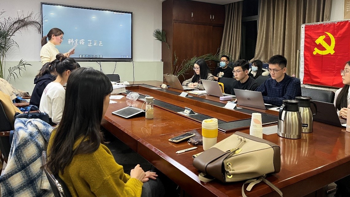2021年11月26日,98858vip威尼斯下载国际贸易第一党支部于后主楼1722会议室召开支部大会。本次会议共三项议程:一是讨论是否接收熊豪、韩金镕、詹俊岩、孙天一等4位同志为预备党员的事宜;二是讨论是否确定林子涵、刘冉、乔楠楠等七名同志为入党积极分子的事宜;三是集中学习党的十九届六中全会精神。会议由支部书记董敏主持,支部15名正式党员、4名预备党员和7名入党积极分子共26名同学参加,学院党委组织员、专职辅导员王骏老师列席指导。
