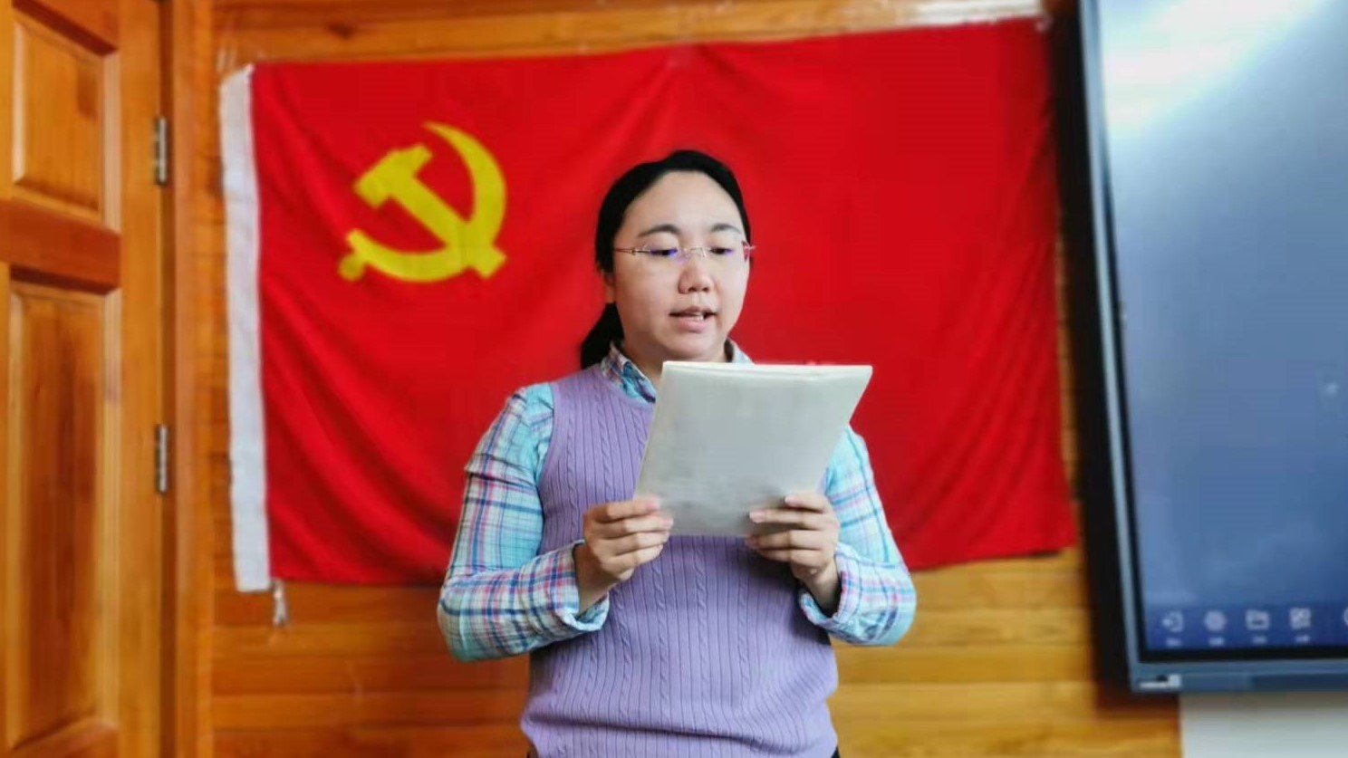 按照党员转正流程要求,会议开始,全体党员起立,面向党旗奏唱《国际歌》,支部书记冯智莹介绍本次党员大会的主要议程以及出席人员情况。