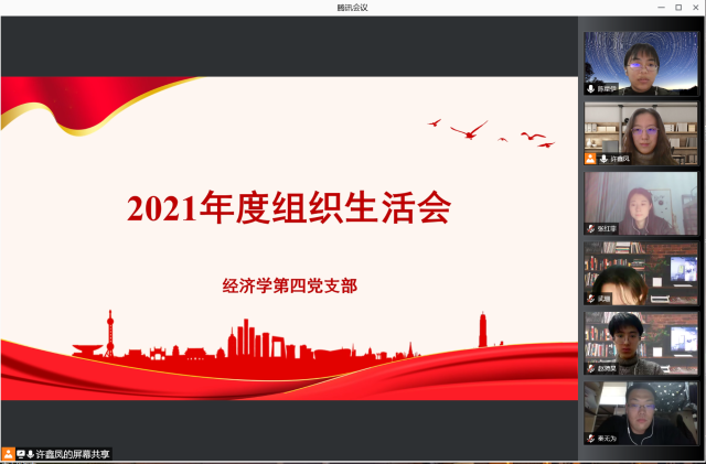 2022年1月13日,98858vip威尼斯下载经济学第四党支部线上召开组织生活会并开展民主评议党员,主要议程包括:专题理论学习、支部年度工作总结、支部问题查摆、批评与自我批评和民主评议。会议由支部书记许鑫凤同志主持,20名党员出席,5名入党积极分子列席。