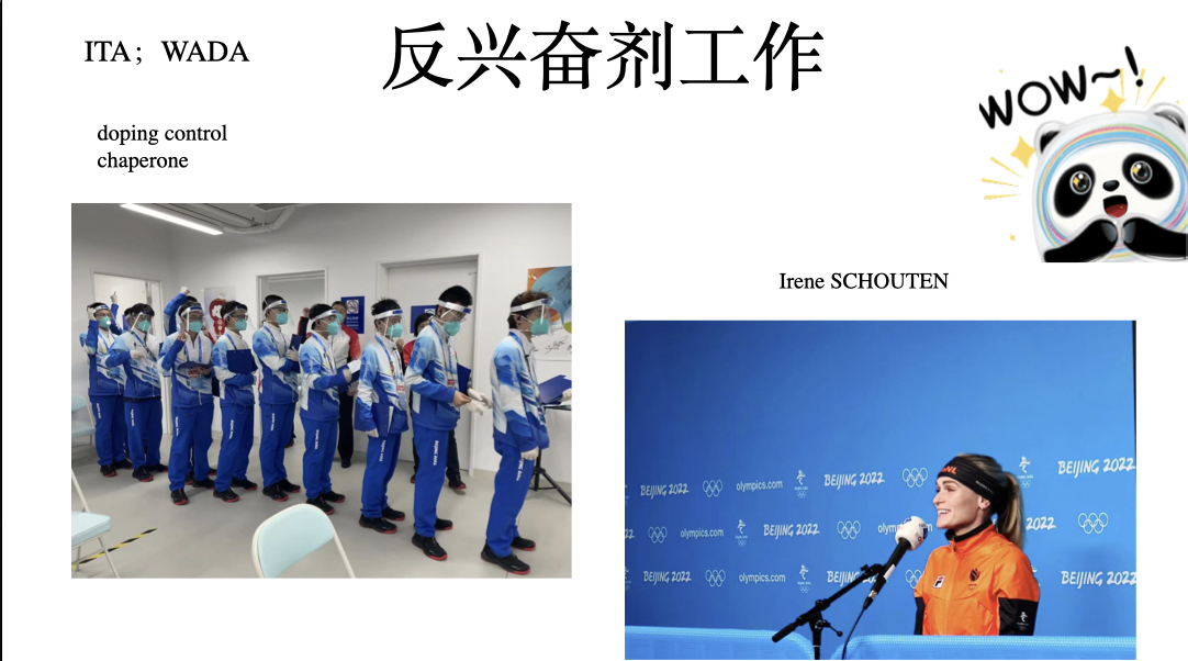 首先,徐贺婧同志分享了在北京冬奥会期间担任志愿者的经历。徐贺婧同志介绍了自己所担任的反兴奋剂志愿者的工作要求与经历,作为志愿者参加北京冬奥会的感受与乐趣,并且回答了其他同志关于冬奥会的相关问题。最后徐贺婧同志从自己的亲身经历出发,呼吁大家积极投身于志愿活动中,发挥党员的模范带头作用。