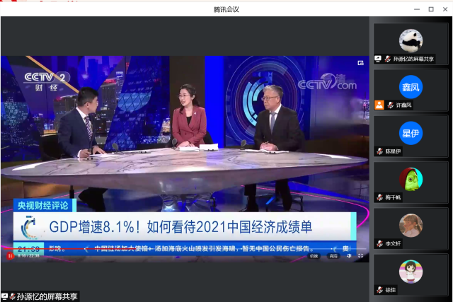 接着,支部学习经济领域时事,聚焦2021年中国经济成绩单。支部成员表示,在中华民族走向伟大复兴的关键时刻,我国克服了全球战疫的不确定性,坚持对外开放不封闭稳住了经济大盘,发展产业做好实体经济的大文章,不断擦亮中国经济高质量发展底色;作为全球第二大经济体,在党的坚强领导下发挥中国特色社会主义的制度优越性,集中力量办大事,中国经济韧性得到了充分的体现。